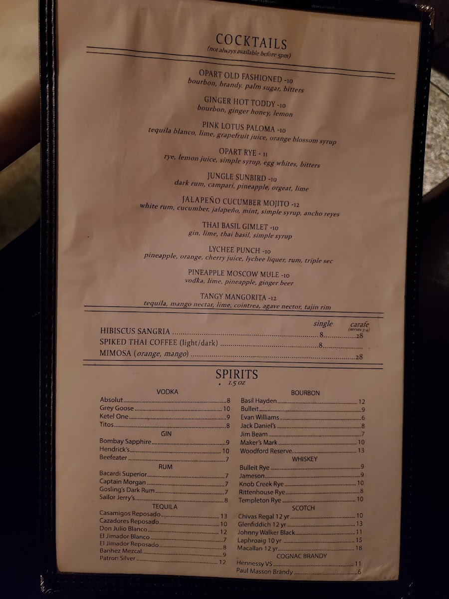 “ Having lived in Malaysia for over 9 years and visiting Penang (Malaysia) and Bankok and all along the southern side of Thailand from Krabi particularly Sri Lanta, to Phi Phi Island (with a postal mail box) to length and width of Phuket for food, visiting Opart on NE corner about 2 shops east of Ashland Ave and north side of Chicago Ave at the junction of Chicago Ave and Ashland Ave in Near North Chicago Area, brought me the same sensation of food as I was experiencing in the Food Paradise of Thailand. Paul who serviced us was one of the best we ever had. Food was phenomenal. The location so comfortable. More than a billion kudos for Team Opart for food quality, service and atmosphere especially the aroma of Thai food. ”